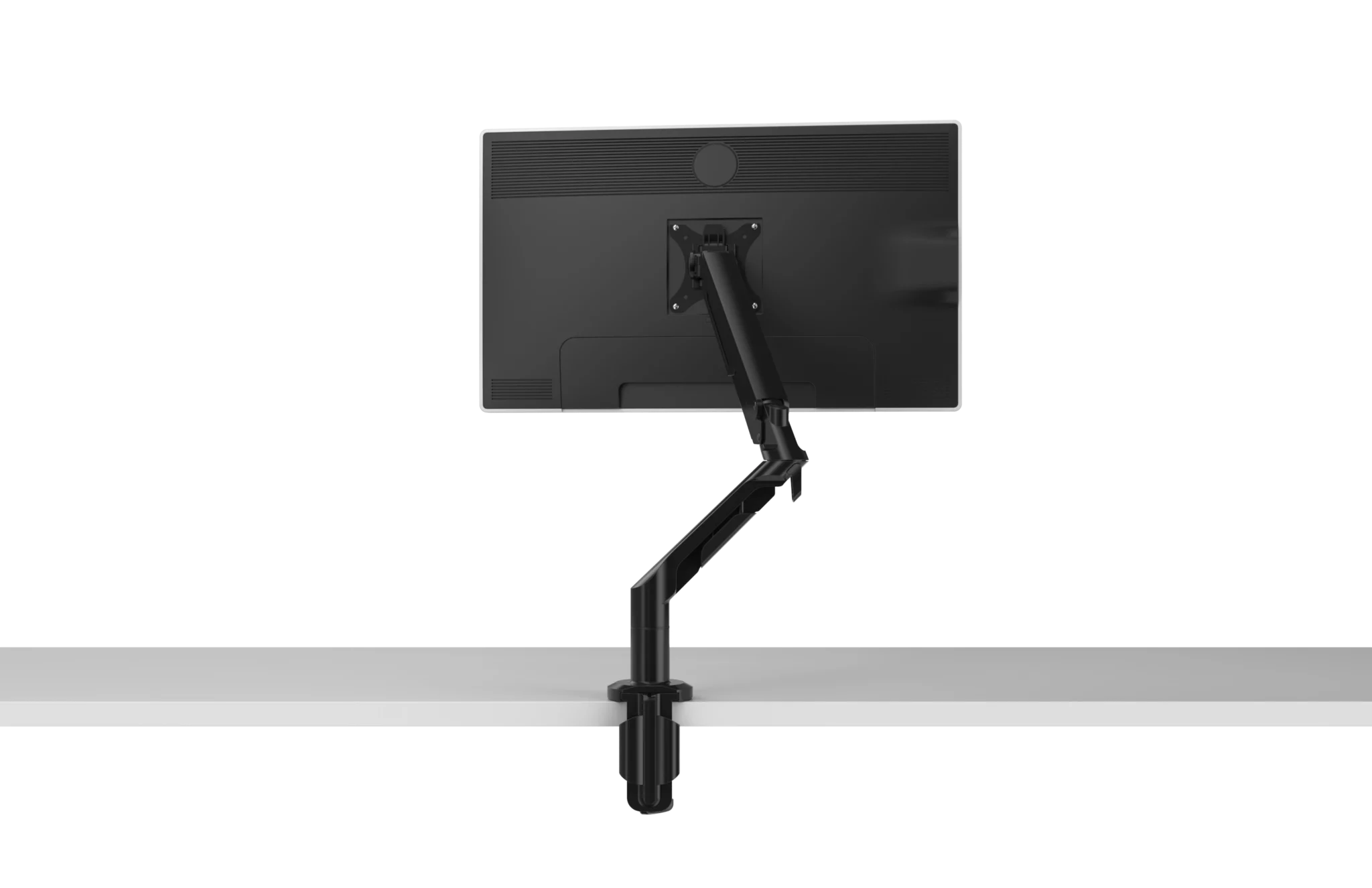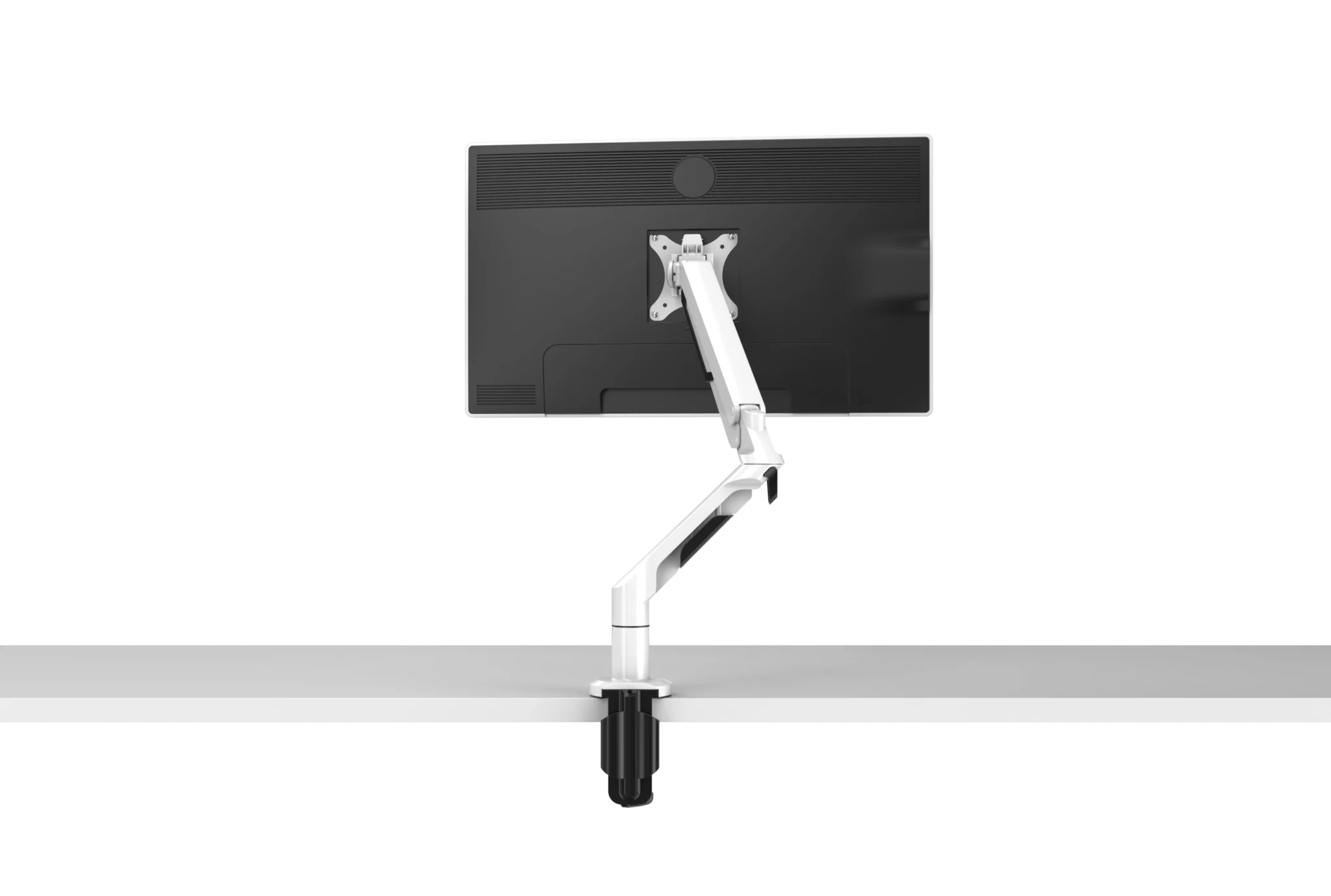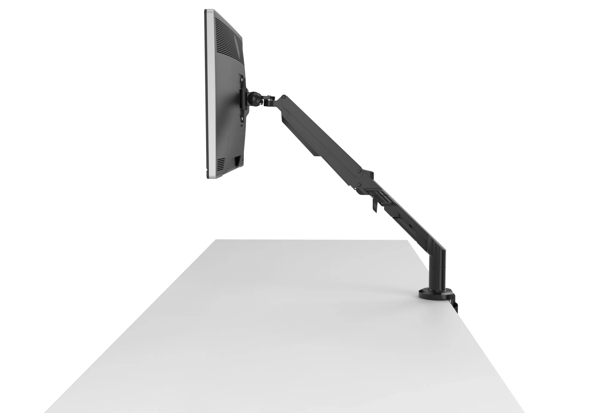 Bras écran ergonomique à ressort à gaz, conçu pour améliorer la posture et libérer l’espace de travail. Réglage fluide, fixation rapide et compatibilité avec la majorité des bureaux professionnels.